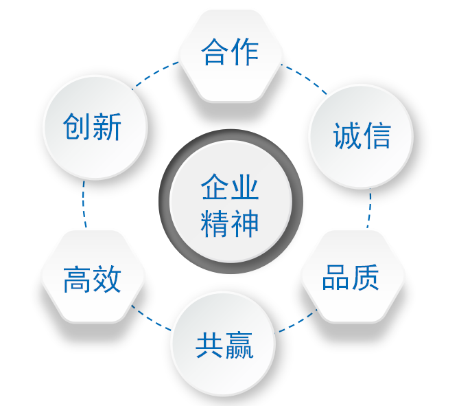 企业精神:高效 、务实、 创新、 诚信、品质、高效、合作、共赢 经营理念:以人为本、科技领先 管理方针:以科技创新引领未来,以知识产权创造财富 企业愿景:成为国际一流的自动化制造企业